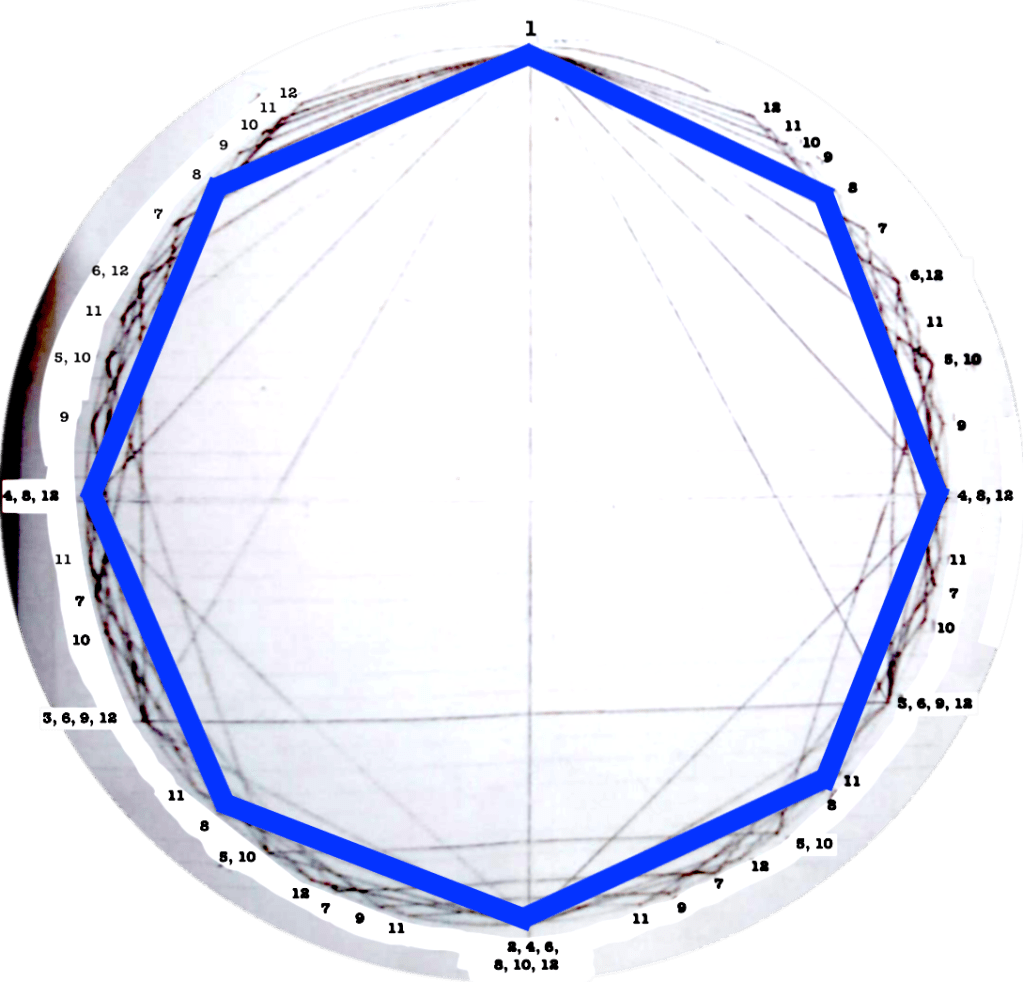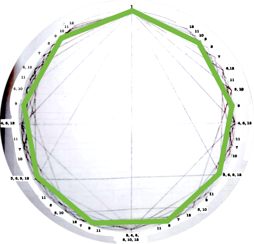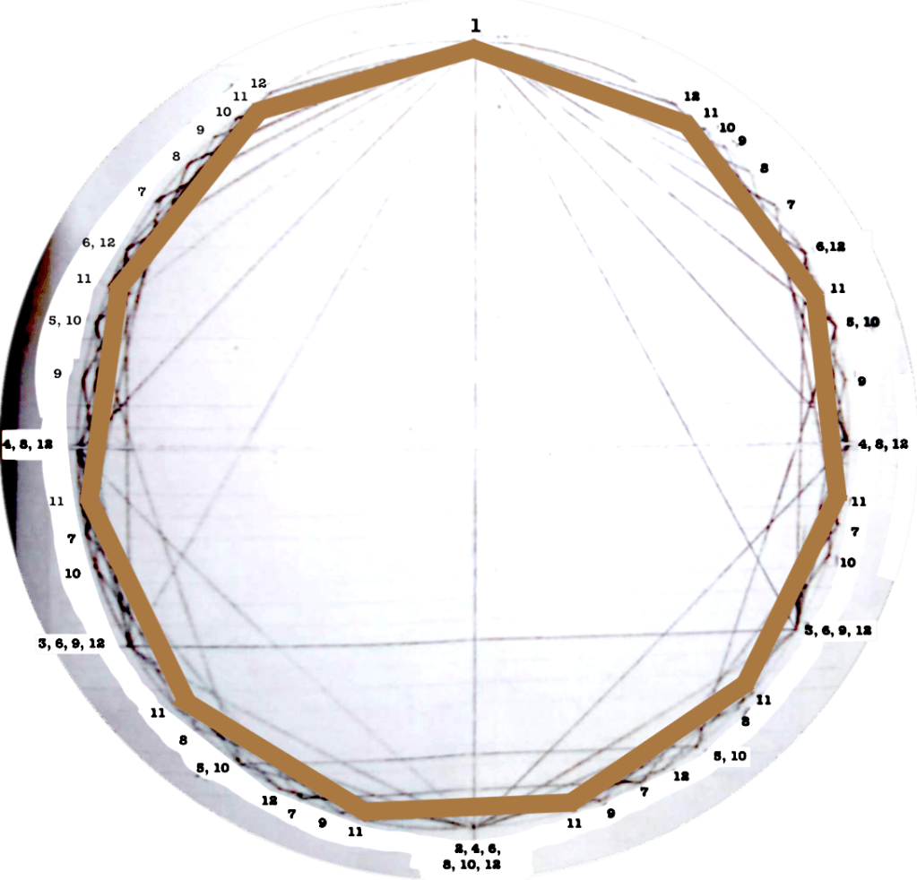 The first version of circles dealt with rhythms/polygons from 1 to 12.