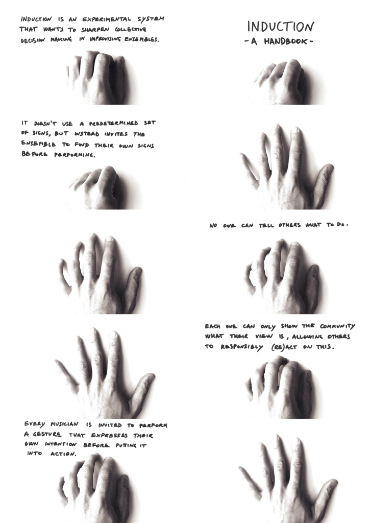 Induction is an ongoing research about possible systems for coordinating decision making in big improvising ensembles through non-verbal communication.